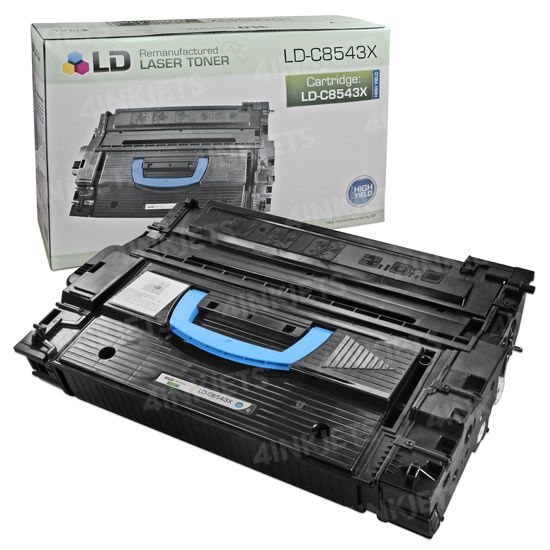 This is a replacement cartridge for the Hewlett Packard C8543X (43X) black laser toner cartridge which is manufactured by LD and is guaranteed to perform with your HP printer. It replaces the original HP C8543X toner cartridge. LD remanufactured replacement C8543X laser toner cartridges are specially engineered to meet the highest standards of quality and reliability you can expect from LD. Our toners have exceptional yields that meet or exceed the OEM (Original Equipment Manufacturer) page yield for the C8543X. Our remanufactured HP 43X remanufactured using both OEM and non-OEM parts including wiper blades, OPC drums, an electronic smart chip for accurate toner level readout and other internal components. While most competitors simply refill the toner cartridge and hope the drum and other key components last, we fully disassemble the toner cartridge and rebuild it to ensure the highest quality prints. High quality LD remanufactured C8543X toner cartridges are an economical and sensible alternative to expensive OEM C8543X (HP 43X) Hewlett Packard laser toner cartridges and supplies. The use of LD remanufactured replacement laser toner cartridges and supplies does not void your printer's warranty. LD remanufactured laser cartridges are not remanufactured by HP. 4inkjets offers a 100% Quality Satisfaction Guarantee on our LD remanufactured C8543X black laser toner cartridges.