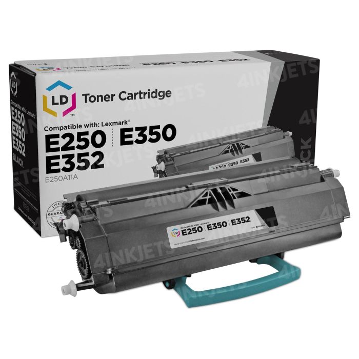 This is a remanufactured Lexmark E250A11A black laser toner cartridge guaranteed to perform with your Lexmark laser printer. It replaces the original Lexmark E250A11A laser toner cartridge. The remanufactured replacement E250A11A laser toner cartridges and supplies (also known as generic) are specially engineered to meet the highest standards of quality, reliability and exceptional yields that meet or exceed OEM (Original Equipment Manufacturer) standards for the E250A11A and offer high-quality printing results. Remanufactured using both OEM and non-OEM parts including OPC drums, wiper blades, and other internal parts, they are an economical alternative to expensive OEM E250A11A Lexmark laser toner cartridges and supplies, and offer big savings over brand-name E250A11A laser toner cartridges and supplies for your Lexmark printer. The use of remanufactured replacement laser toner cartridges and supplies does not void your printer's warranty. We offer a 100% Quality Satisfaction Guarantee on our remanufactured E250A11A laser toner cartridges and supplies.