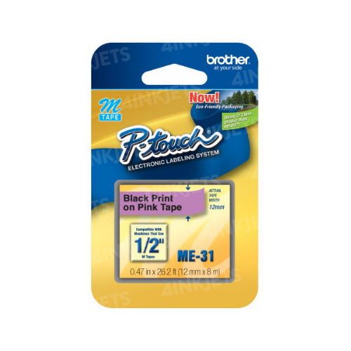 This is an original, OEM Brother ME31 black on pink tape cartridge for your P-Touch label printer. The Brother ME31 tape cartridges and supplies deliver consistent printing results. This ME31 tape cartridge is 12mm (0.47"") x 8m (26.2 ft) and non-laminated. Print excellent, crisp pages ideal for both home and office use with the Brother ME31 tape cartridge.