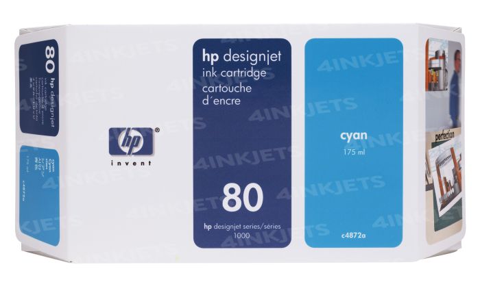 The original Hewlett Packard C4872A (80) 175ml cyan inkjet print cartridge is a high resolution cartridge. Buy C4872A ink cartridges from 4inkjets.com to save time, money and unnecessary hassle. This print cartridge contains original Hewlett Packard 80 ink that provides quality and reliability every time you print.