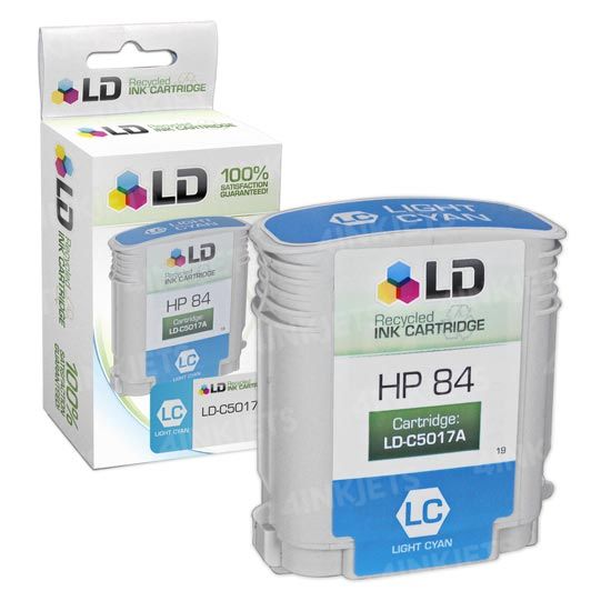 This LD remanufactured C5017A (HP 84) light cyan inkjet cartridge is an original Hewlett Packard C5017A ink cartridge which has been through one cycle of service and has been remanufactured using both OEM and non-OEM parts. This professionally remanufactured LD cartridge for HP 84 has a 'smart chip' that makes continuous adjustments to optimize print quality and enhance reliability and cost effectiveness as well as monitor ink levels. The ink delivery system allows for efficient, economical replacement of individual ink cartridges. Why buy an original HP C5017A cartridge when you can get perfect quality out of our LD remanufactured C5017A inkjet cartridge at a fraction of the cost? Our remanufactured ink cartridges are not remanufactured by HP.