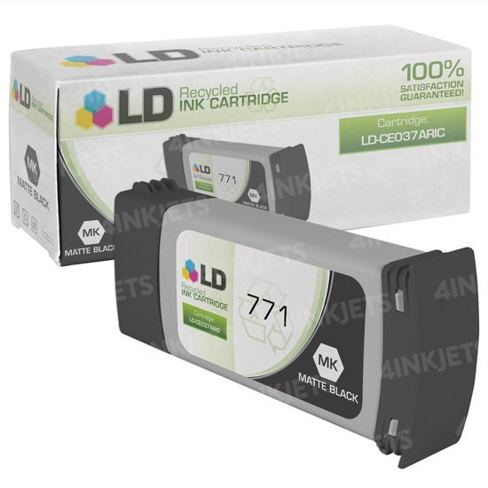 This LD remanufactured CE037A (HP 771) matte black inkjet cartridge is an original Hewlett Packard CE037A ink cartridge which has been through one cycle of service and has been remanufactured using both OEM and non-OEM parts. This professionally remanufactured LD cartridge for HP 771 has a 'smart chip' that makes continuous adjustments to optimize print quality and enhance reliability and cost effectiveness as well as monitor ink levels. The ink delivery system allows for efficient, economical replacement of individual ink cartridges. Why buy an original HP CE037A cartridge when you can get perfect quality out of our LD remanufactured CE037A inkjet cartridge at a fraction of the cost? Our remanufactured ink cartridges are not remanufactured by HP.